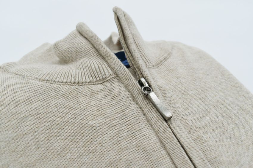 1/4 Zip katoen Beige