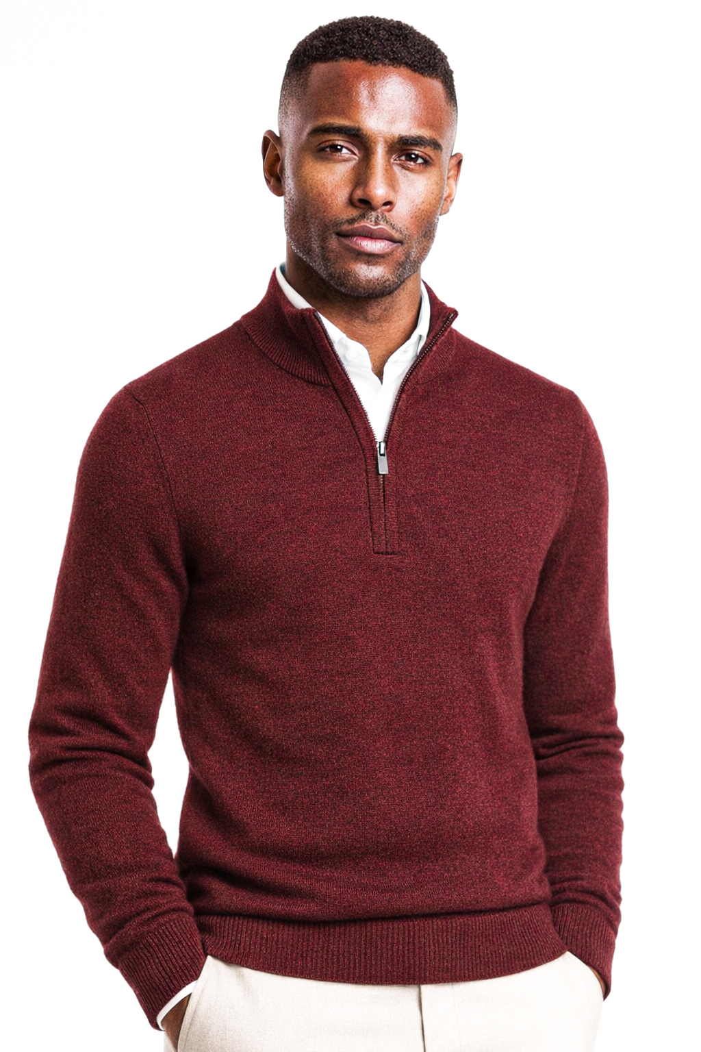1/4 Zip merino-wol Bordeaux