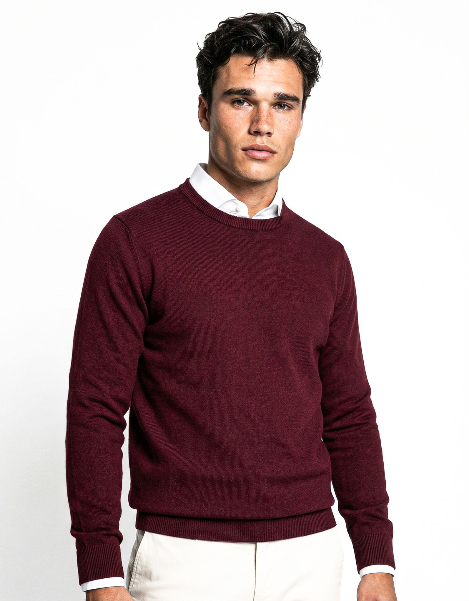R-hals katoen Bordeaux