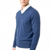 V-hals merino-wol Rafblauw